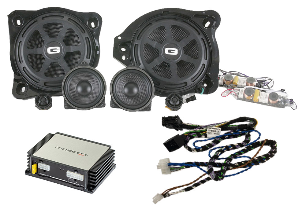 The SoundUp package includes a 3-way front speaker system, a 6 channel DSP amplifier, a vehicle specific plug & play harness set and damping material to prevent vibration of the speaker mounting locations.