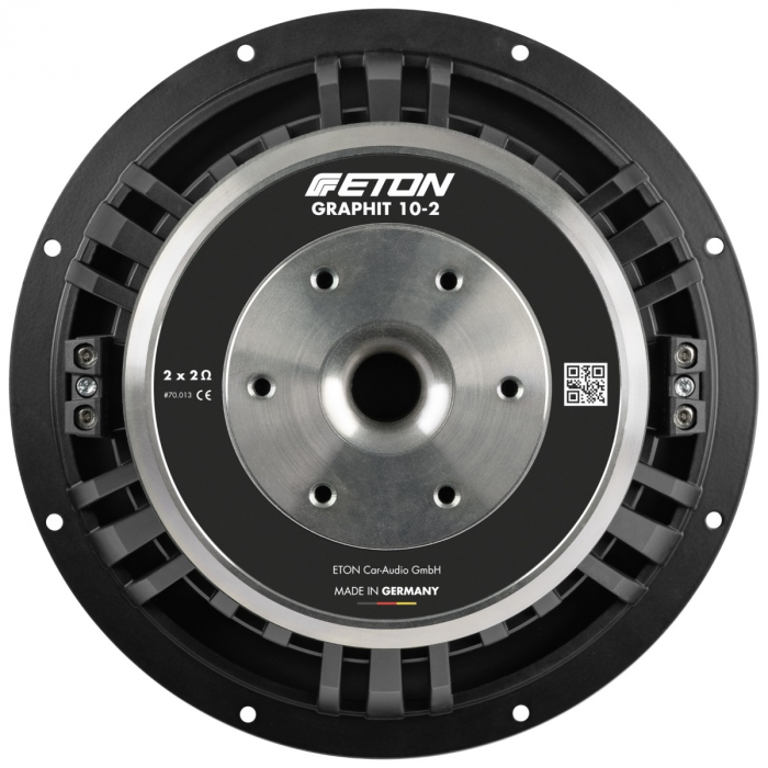 The GRAPHIT 10-2 offers ETON-typical finesse and innovative detailed solutions: This includes the specially developed aluminum die-cast basket, which guarantees efficient cooling of the oscillation unit thanks to special ventilation openings. The extremely strong ferrite magnet and the large, resilient double voice coil provide the powerful drive. CNC-machined pole plates with a large core hole and additional ventilation openings enable the necessary vibration depth and support cooling.
